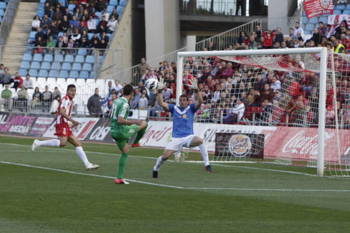 Es verdad que los locales saltaron al terreno de juego con mucha fuerza pero los de Ferrer Sicilia también lo intentaron, pero no estaban mostrando su mejor cara. Y en un partido tan trascendental hay que darlo todo. Y dándolo todo, en el diecisiete Aleix Vidal comenzó la fiesta almeriense al subir el primero al marcador tras el saque de un córner. Los catorce mil hinchas que se encontraban dentro del Estadio de los Juegos Mediterráneos estallaron en euforia y alegría. Cada vez estaban más cerca de conseguir el mejor broche final de la temporada.