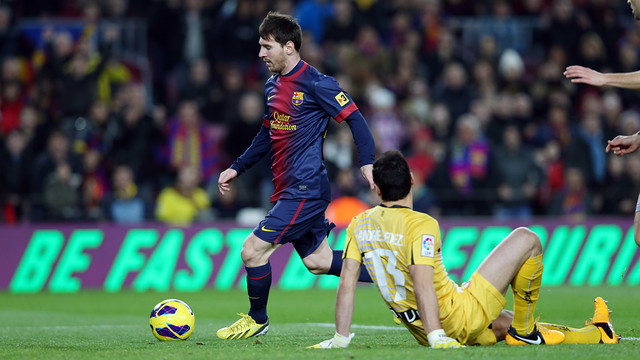 Muy pronto avisaron de sus intenciones los hombres de Jordi Roura, que está cubriendo la ausencia de Vilanova por motivos de salud. ¿Y quién abrió el marcador? Sí, el de siempre. ¡Y de qué manera! Después del mítico regate de Pelé en el Mundial de México de 1970, ese gol que no fue, Messi inventó su propio gol. Aprovechando una gran asistencia al hueco de Xavi, se plantó ante Andrés Fernández, lo dejó sentado sin apenas inmutarse el astro argentino y marcó a placer. Con este golazo, Messi es el primer jugador en toda la historia de la Liga que marca en 11 jornadas consecutivas.