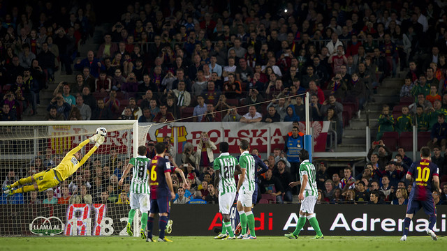 El Messías demostró sus credenciales al poco de ingresar al campo con un impecable lanzamiento de falta que se coló pegado a la escuadra izquierda de la portería de Adrián. La aparición cambió la cara del Barça, que se volvió a poner ese traje de las mejores noches que tan grande ha hecho a este equipo. Pero el dominio de la posesión no se tradujo en grandes ocasiones de peligro. Tuvo que ser Messi, explotando su faceta de pateador, quien causara estragos con los lanzamientos de falta. Tras el gol, lanzó una peligrosa rosca que se estrelló en la cruceta. Después, le tocaría al Betis asustar a Pinto, pero una aparición providencial de Adriano evitó un remate franco. Y sería de nuevo Messi el que acabaría con todos los fantasmas. Cargó desde la derecha, se asoció con Iniesta en la frontal, el manchego abrió de tacón para la llegada de Alexis por la derecha y éste se la puso al argentino para que marcara a placer. El Messías lideró la remontada culé.